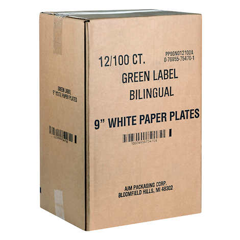 ASSIETTES EN PAPIER ÉTIQUETTE VERTE 9 PO, 12 PAQUET DE 100
