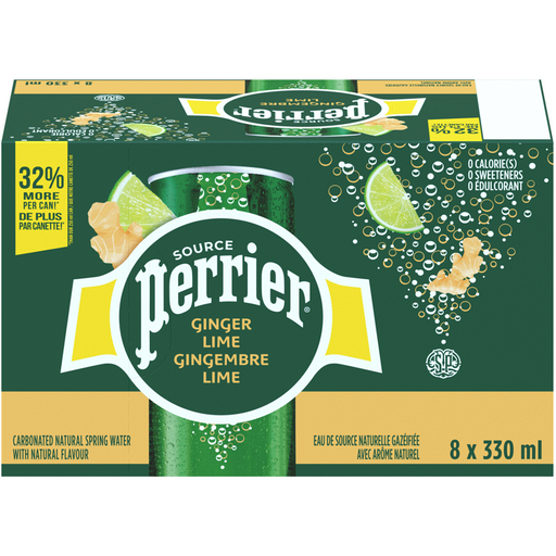 EAU DE SOURCE GAZÉIFIÉE PERRIER, GINGEMBRE LIME, 8 X 330ML