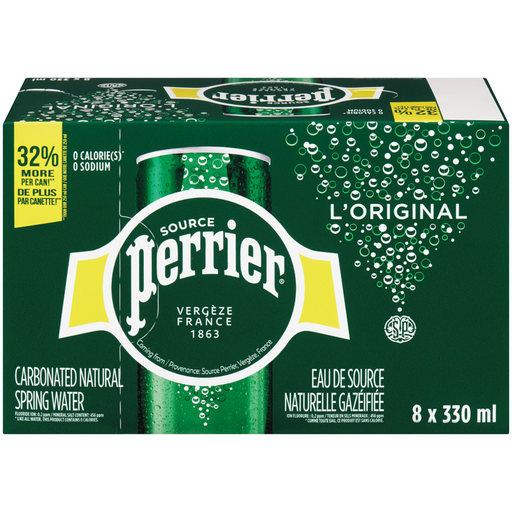 CANETTE D'EAU DE SOURCE NATURELLE GAZÉIFIÉE PERRIER, 8 X 330ML