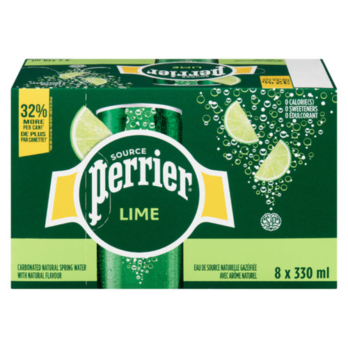 EAU DE SOURCE GAZÉIFIÉE PERRIER, LIME, 8 X 330ML
