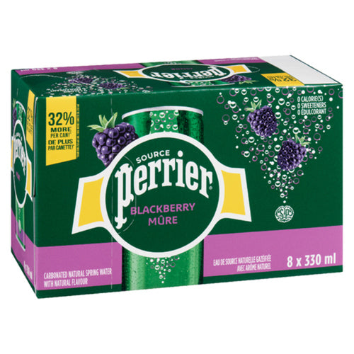 PERRIER EAU DE SOURCE GAZÉIFIÉE EN CANETTE MÛRE, 8 X 330ML