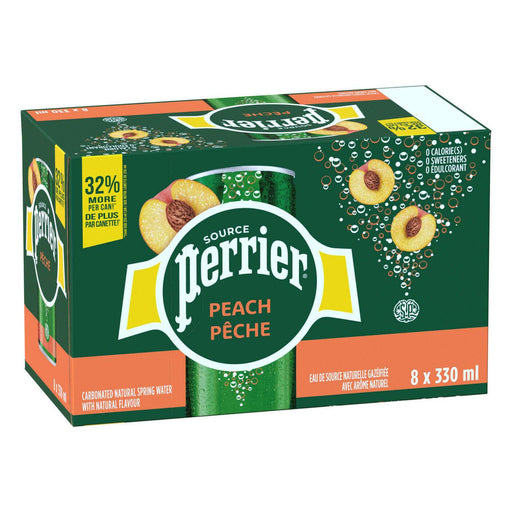 PERRIER EAU DE SOURCE GAZÉIFIÉE PÊCHE, 8 x 330ML