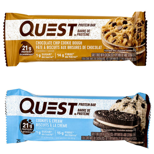 QUEST7 × pâte à biscuits aux pépites de chocolat 7 × biscuits et crème 21 g de protéines par barre Riche en fibres 1 g de sucre par barre C...